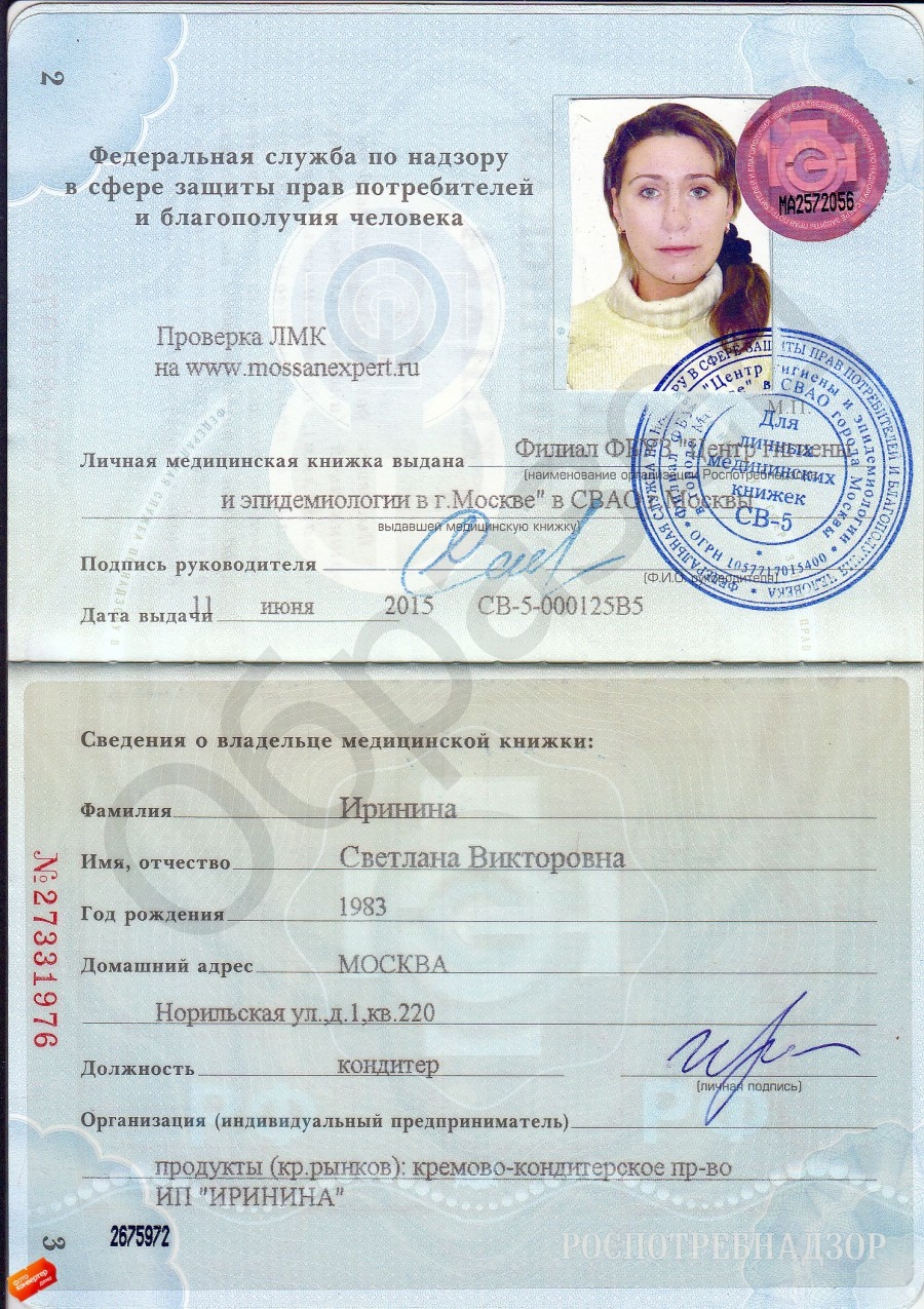 Продление действия медицинской книжки. Обновление всех отметок за 1 час.