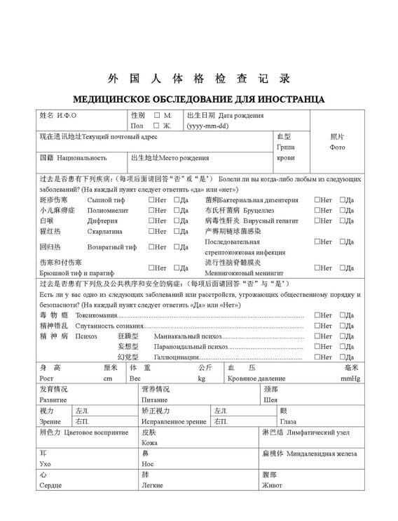 Типы китайских виз, требующих медицинскую справку: