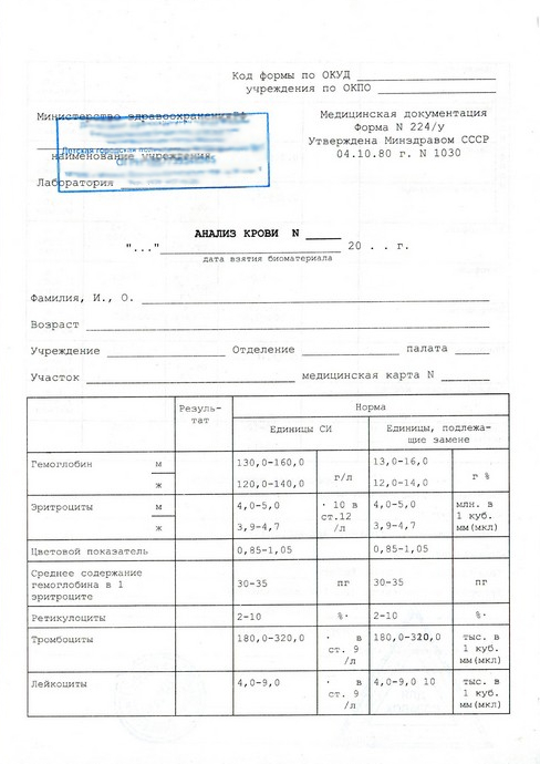 Справка общего анализа крови 224/у действует: